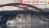 中国の北京市郊外で23日、橋の一部が大きな音を立てて崩落する事故が発生した。