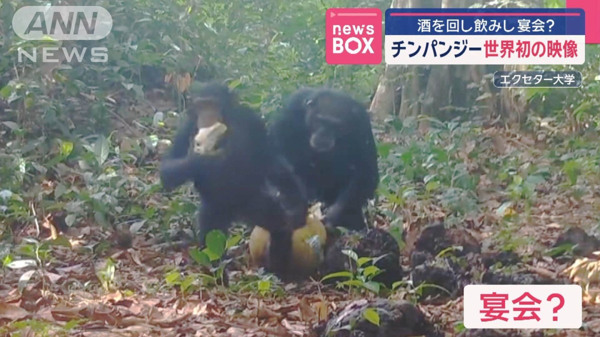 「チンパンジーがお酒を飲むのは過去に撮影されているが、お酒(果物)を分け合って宴会するなどしているのは初めて」