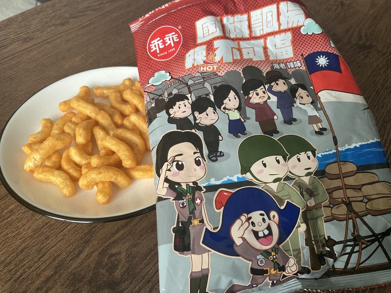 「国民的スナック」と呼ばれる「乖乖(グアイグアイ)」は1969年発売のロングセラー。特別パッケージの一つでは、上海で国民党軍と日本軍が戦った「四行倉庫の戦い」(37年)をイラストにした。袋の裏には年表が掲載され、蔣介石率いる中華民国が第二次大戦に勝利し、49年に共産党が中華人民共和国を建国した経緯を強調。「誰が戦ったのか? 一目瞭然だ!」との文字が添えられている。蔣介石は共産党との内戦に敗れ、台湾に逃れた。