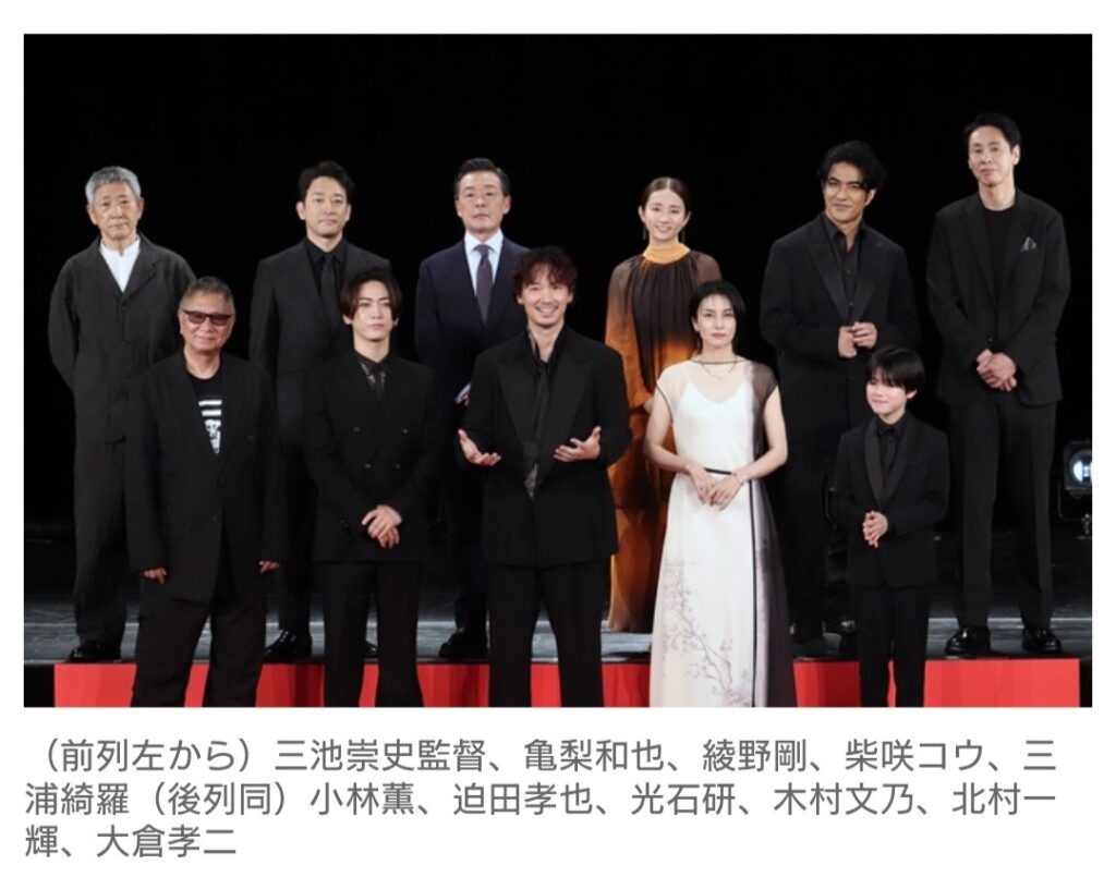 三池監督、綾野をはじめ柴咲コウ、亀梨和也、大倉孝二、迫田孝也、三浦綺羅、木村文乃、光石研、北村一輝、小林薫がレッドカーペットと舞台挨拶に登場した。