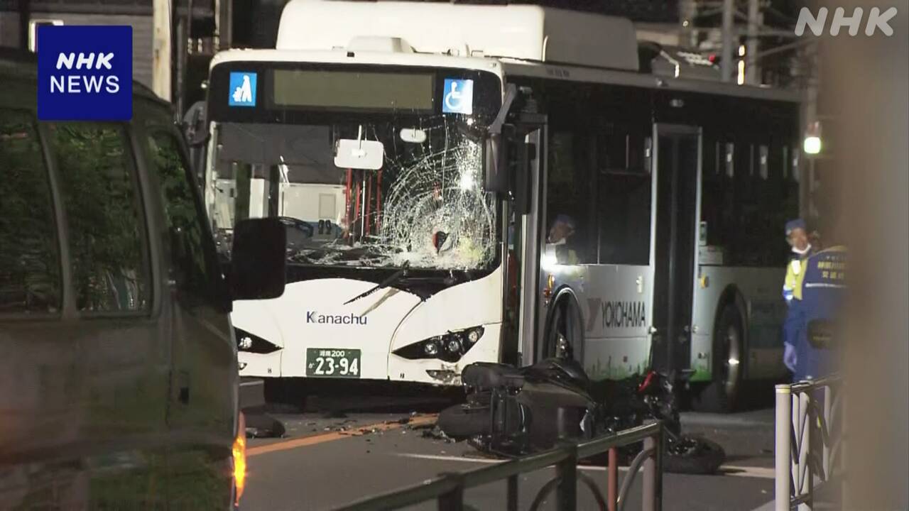 21日午後4時40分ごろ、大磯町高麗の国道1号でオートバイが反対車線を走ってきた「神奈川中央交通」の路線バスに正面からぶつかりました。